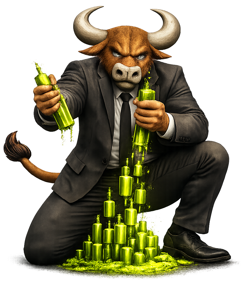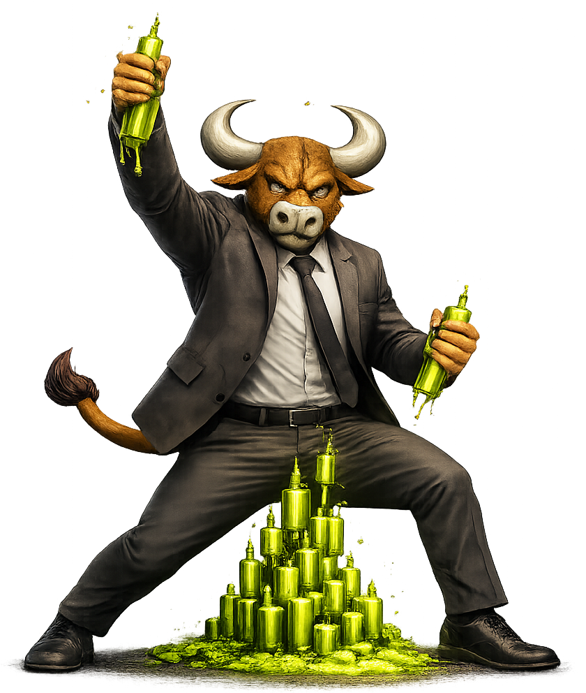 Sometimes the market goes up. Sometimes it doesn’t ask for permission. Butt Bull doesn’t celebrate. He simply turns around and lets the green candle rise. No shouting. No victory dance. Just upward pressure.